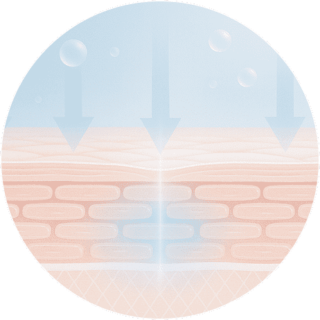 親油性の肌にも水溶性の有効成分を効率よく角層に素早く届ける技術。